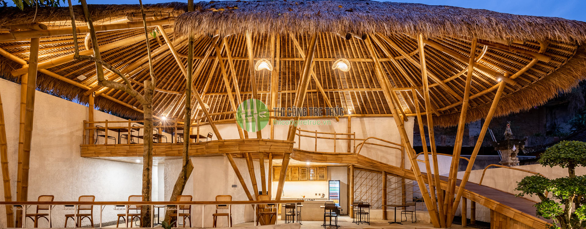 Thi Công Tre Trúc là đơn vị chuyên thiết kế công các công trình bằng tre trúc, tầm vông trọn gói giá rẻ tại TPHCM và các tỉnh. Chúng tôi chuyên nhận thi công tre trúc cho các hạng mục: ốp vách tre, trần tre, ốp trụ cột bằng tre, làm hàng rào tre, cổng chào bằng tre, mái hiên, mái che ngoài trời, nhà tre mái lá,… Với nhiều năm hoạt động trong lĩnh vực thi công và cung cấp các loại vật liệu tre trúc. Kiến trúc từ tre trúc đang rất được khách hàng ưa chuộng trong thời gian gần đây. Từ nhà hàng, quán cafe, quán ăn, quán nhậu, spa, nhà văn hóa, văn phòng công ty,… đều thích hợp với lối kiến trúc dân dã này. Kiến trúc tre vừa mang lại giá trị về văn hóa cũng như giá trị về tinh thần.